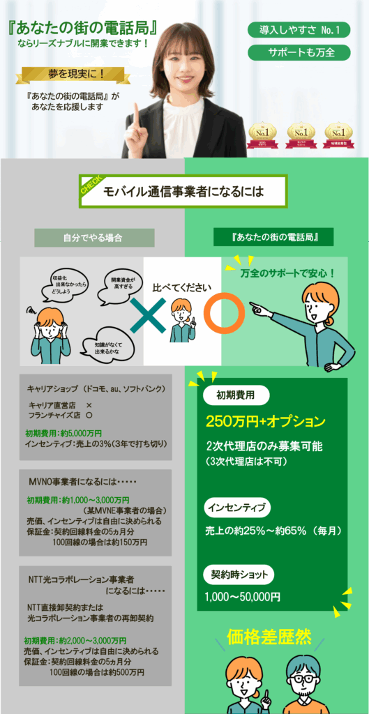 通信事業のフランチャイズという大きな一歩を踏み出そうというお考え、とても素晴らしいです。